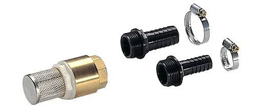 Gardena aanzuigfilter met terugslagklep. Robuuste metalen-/kunststofuitvoering. Voor Gardena aanzuigslang. Terugslagklep verkort de aanzuigtijd als de pomp weer aanslaat. Compleet met slangklem.