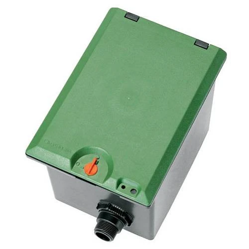 Gardena ventielbox V 1. Voor 1 beregeningsventiel 9 V of 24 V. Telescoop-schroefverbinding voor eenvoudige ventielmontage/-demontage. Deksel met kindveilige sluiting. Met 1”-buitendraad.
