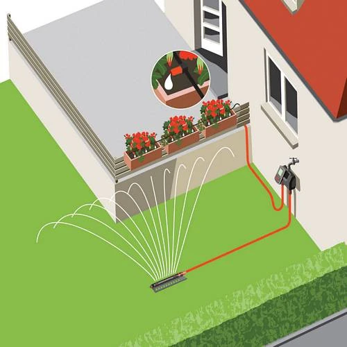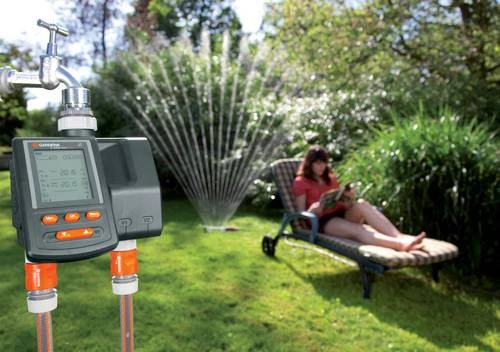 Wat een mens niet kan, kan deze Gardena waterverdeler wel: zich opsplitsen. Met één druk op de knop, kan u bijv. het gazon aan de voorzijde van de tuin en daarna de bloemen in de achtertuin besproeien, volgens de noden van de planten (tijd en frequentie). Comfort model voor automatische besproeiing van 2 tuinoppervlakken. De besproeiingscomputer heeft een grote display en een afneembaar invoerpaneel voor eenvoudige programmering. Per uitgang, tot 3 besproeiingscyclussen programmeerbaar per dag. Werking mogelijk met 2 Gardena regensensors of 2 bodemvochtigheidssensoren. Beide uitgangen zijn echter ook via één sensor te bedienen. Besturing kan ’s nachts eventueel geheel via bodemvochtigheidssensor lopen.