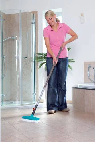 Gardena Combi-System-schrobber. Goede resultaten door zeer elastische polypropyleen borstels. Borstelhuis van hoogwaardig kunststof. Meubelsparende, afgeronde hoeken.