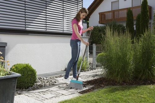 De Gardena combisystem Terrasbezem, met een werkbreedte van 32 cm, is ideaal voor het vegen van terrassen en balkons. De slagvaste behuizing van hoogwaardig kunststof heeft stevige borstels voor een optimaal schoonmaakresultaat. De combisystem Terrasbezem past op alle combisystem stelen, waarbij Gardena de 130 cm lange steel aanbeveelt, afhankelijk van de lengte van de gebruiker.