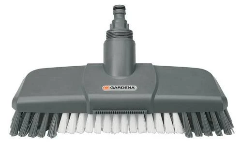 Gardena Comfort-schrobber. Met waterdoorvoer via Original Gardena Systemaansluiting. Verschillende borstellengtes: Voor intensieve reinigingswerking, vooral bij oneffen ondergrond, voegen en kuilen. Met speciale vlakke waterstraal en schraper voor het losmaken van hardnekkig vuil. Voor grondige reiniging van harde ondergrond (bijv. terras, voetpad, oprit van garage etc.). Te gebruiken met alle Original Gardena Cleansystem waterstelen.