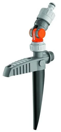 Gardena waterstekker. Bovengronds geïnstalleerd wateraftappunt. Wateraansluiting met automatisch stopventiel. Scharnierende, draaibare aansluiting voorkomt knikken van de slang. Montage aan de muur of met spike in losse ondergrond. Met 3/4″-buitendraad.
