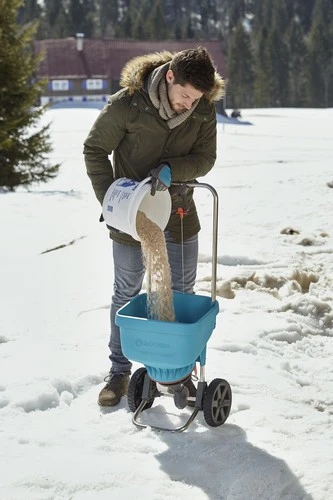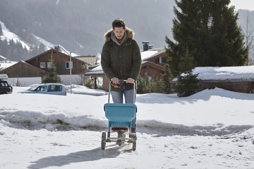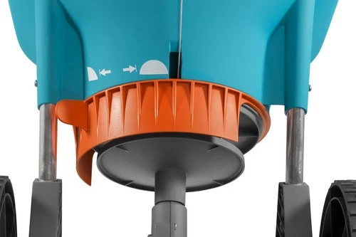 De Gardena Strooiwagen XL is zeer geschikt voor de eenvoudige verspreiding van meststoffen en strooizout op grotere oppervlakken. De strooischijf verdeelt het strooigoed netjes en zeer gelijkmatig. De strooiwagen XL is eenvoudig te bedienen met de open/sluit-functie op de handgreep, waar ook de juiste doseringshoeveelheid kan worden ingesteld. Een afdekplaat op de strooischijf zorgt voor de gelijkmatige verdeling en voorkomt dat de gebruiker ‘bekogeld’ wordt. De strooiwagen kan eenvoudig met water worden gereinigd.