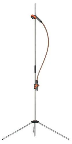Gardena tuindouche Trio. Buiten douchen is nu net zo comfortabel als in de badkamer. Door driepootstatief overal makkelijk te plaatsen. In hoogte verstelbaar en met afneembare douchekop met 1,3 m aansluiltslang. Twee waterstraalvormen: zachte, brede douchestraal of fijne sproeinevel. Hoogte traploos instelbaar. Met reguleer- en afsluitventiel voor het regelen van de waterdoorvoer.