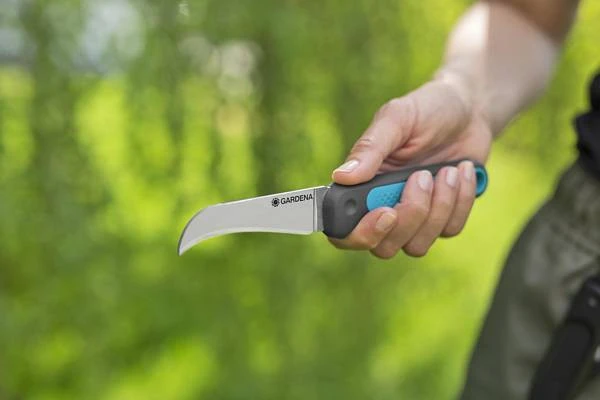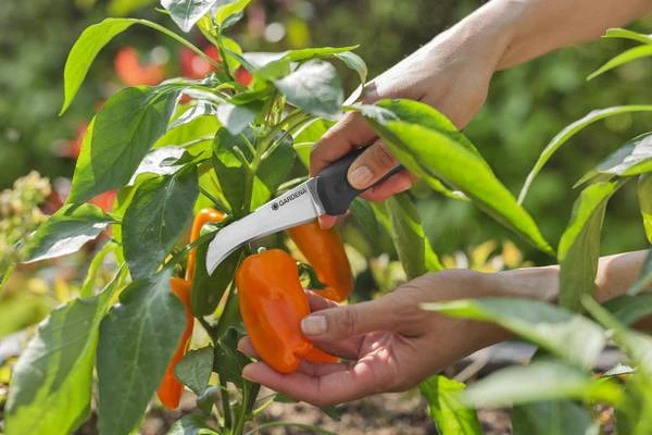 Gebruik de praktische VeggieCut van Gardena om groente en sla te oogsten, reinigen en schillen. Het sikkelvormig mes is gemaakt van een duurzaam roestvrij staal. Je kan er nauwkeurige, nette en makkelijke sneden mee maken. Je kan zelfs dikkere groenten zoals courgettes met slechts één beweging snijden. De bijgeleverde holster helpt je op meerdere manieren. Je hebt het in Duitsland ontwikkelde mes altijd bij de hand tijdens het oogsten, dankzij de riemholster en je kan hem veilig opbergen. Indien nodig kan je de geïntegreerde slijper gebruiken om het mes te slijpen. Dankzij de ergonomische ErgoTec-handgreep past het mes comfortabel in je hand en is hij slipvast dankzij de ingebouwde zachte onderdelen. De voedselveilige VeggieCut laat geen enkele geur of smaak achter. Je kan hem ideaal opbergen aan bijvoorbeeld de keukenmuur, door het oogje te gebruiken. Het oogstmes is ook vaatwasmachinebestendig en is daardoor erg gemakkelijk schoon te maken.
